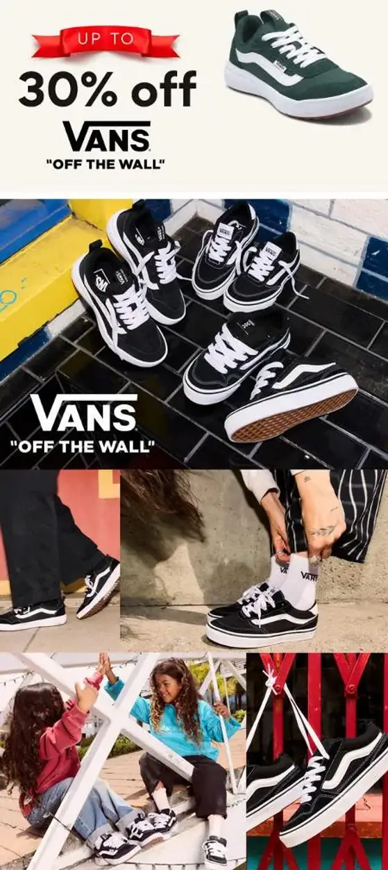 Hurry, limited time only! Shop in store and get up to 30% off Vans.