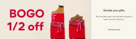 Hurry in and buy one item, get a second item of equal or lesser value for half price in store.