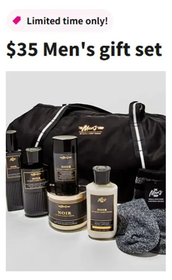 Limited time only! Shop in store and get men's gift set for $35.