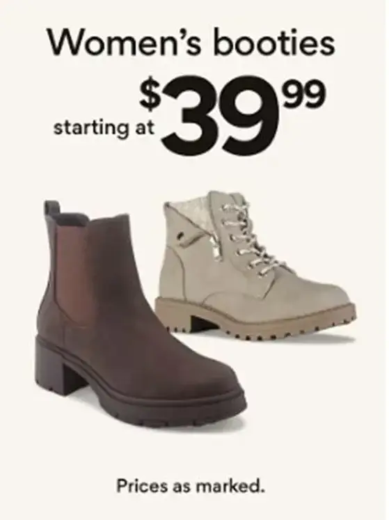 Shop in store and get women's booties starting at $39.99 for a limited time.